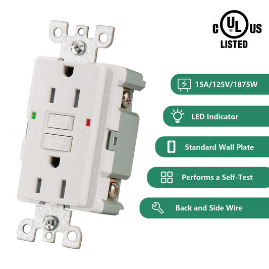 GFCI Outlet Receptacle,Ground Fault Electric Plugs,125V 15Amp,Weather-Resistant and Tamper-Resistant,GFI UL&CUL listed White