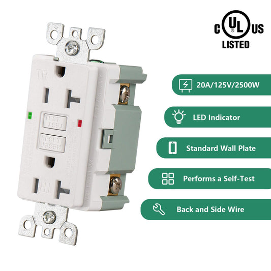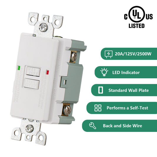 GFCI Outlet Tamper Resistant,120VAC 20Amp, LED Indicator,Ground Fault Electric with Decor Wall Plates and Screws,UL Listed,Back &Side Wire,White
